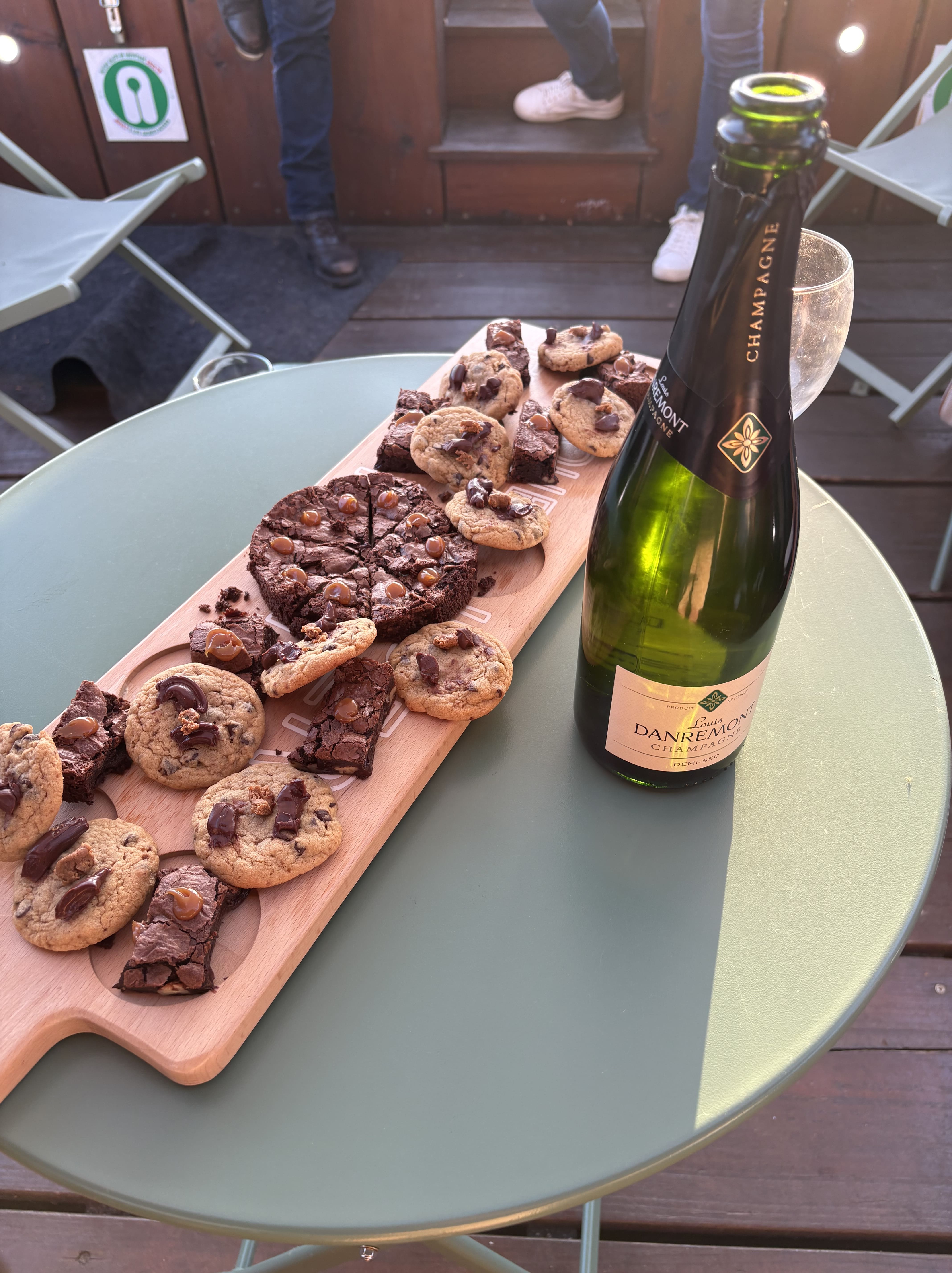 Navigation 2 heures minimum avec deux coupes de bulles Saumuroise ou vins d’Anjou avec planche de charcuteries et fromages.